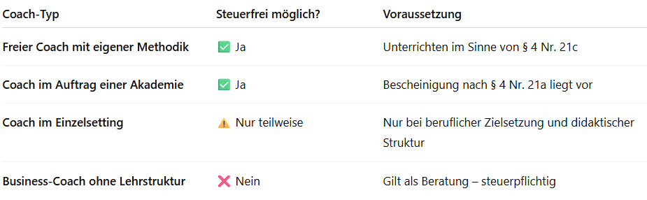 Coaching mit Arbeitgeberauftrag (z. B. Supervision, Teamentwicklung)? → steuerfrei möglich, wenn beruflicher Bezug nachweisbar ist